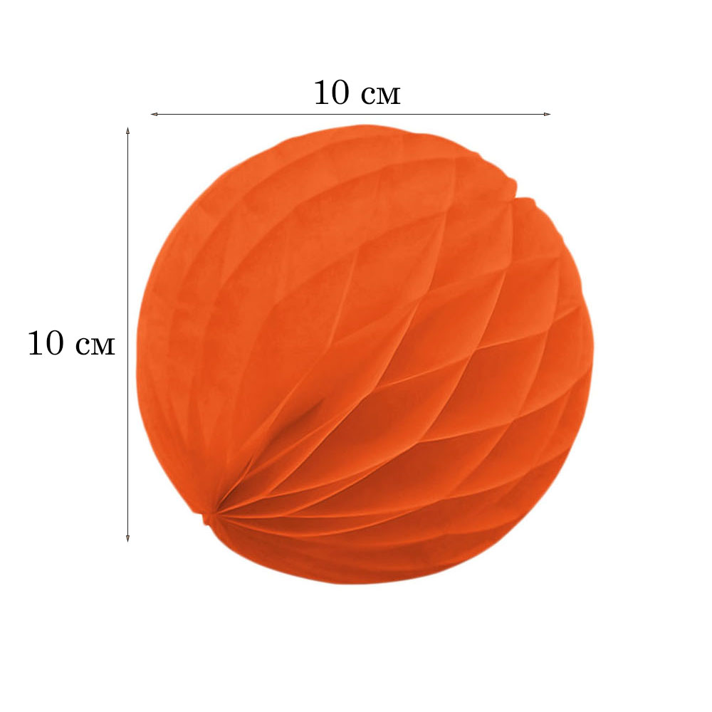 Бумажное украшение шар 10 см, оранжевый