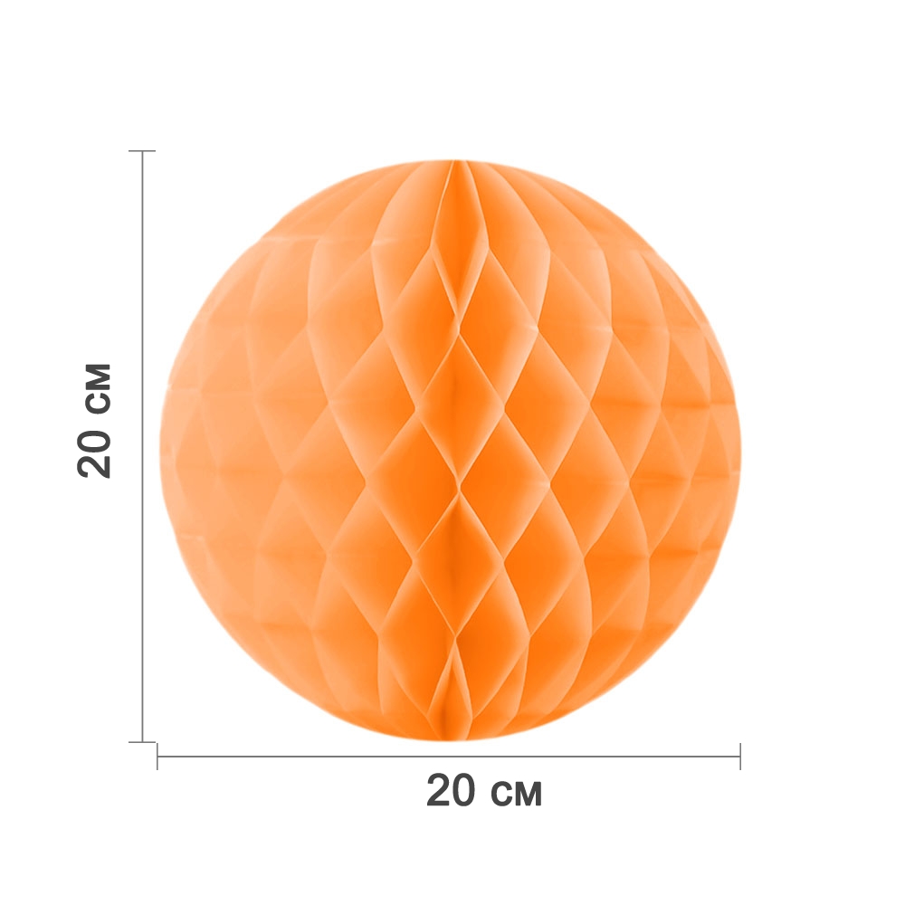Бумажное украшение шар 20 см светло-оранжевый