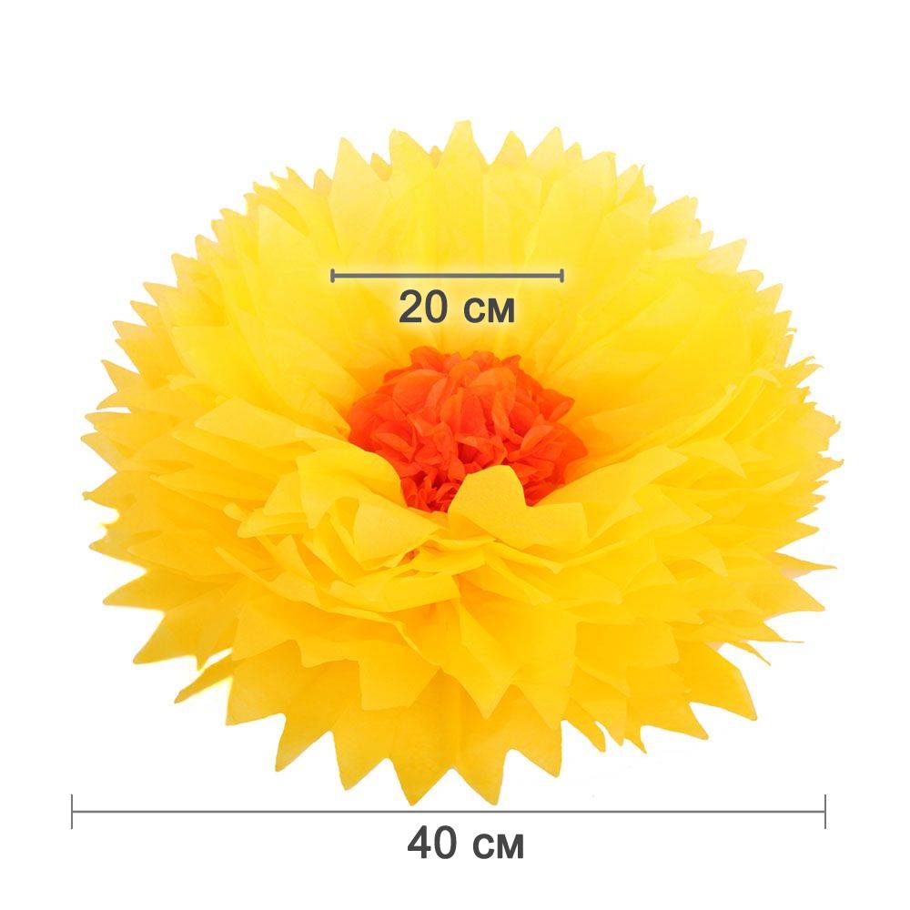 Бумажный цветок 40 см ярко-желтый+оранжевый
