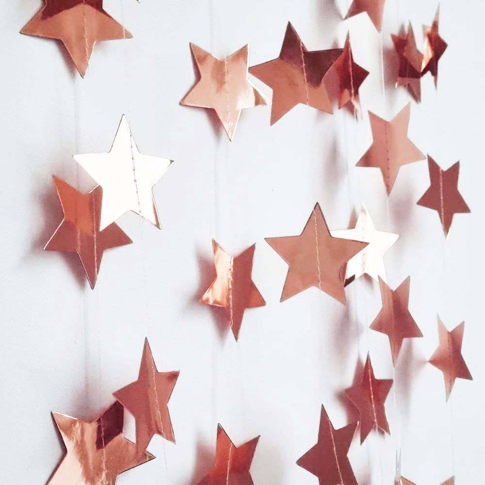 Гирлянда Звезды металлик 7 см 4 м розовое золото