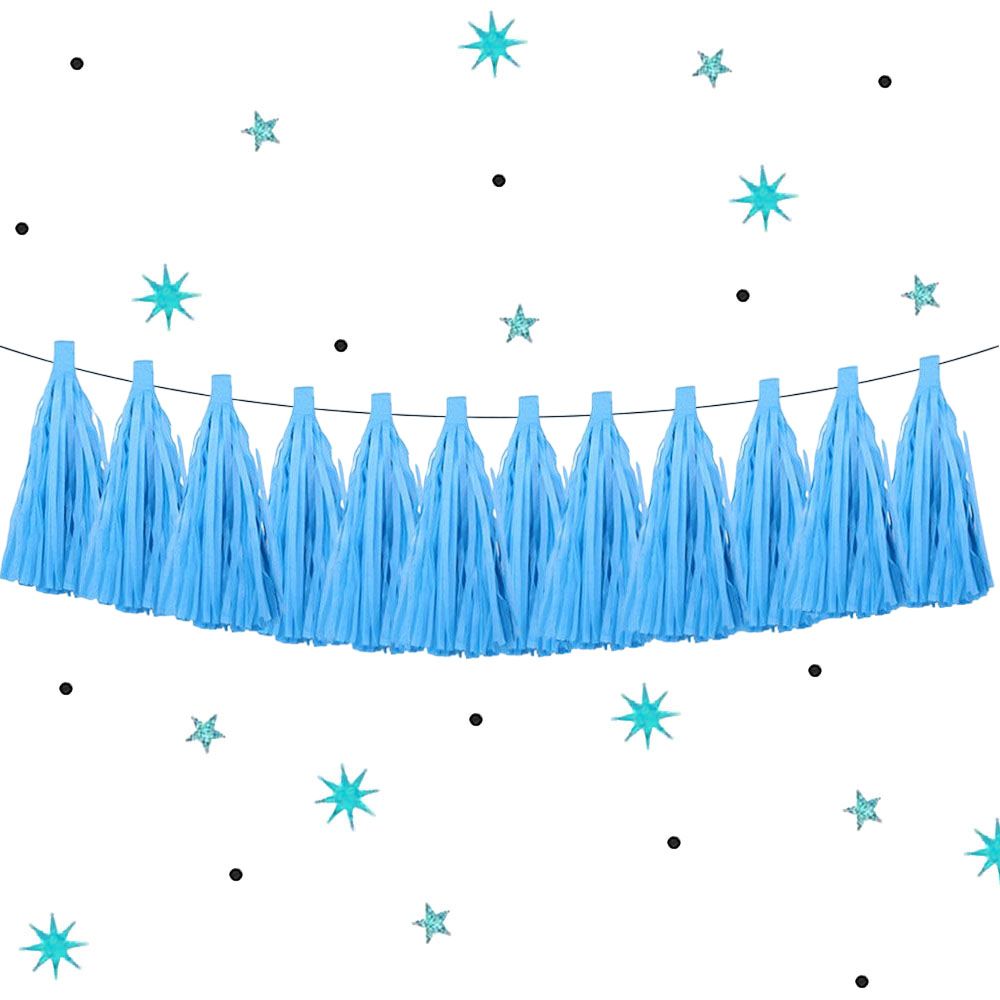 Гирлянда тассел 12 кисточек по 10 листов, синий