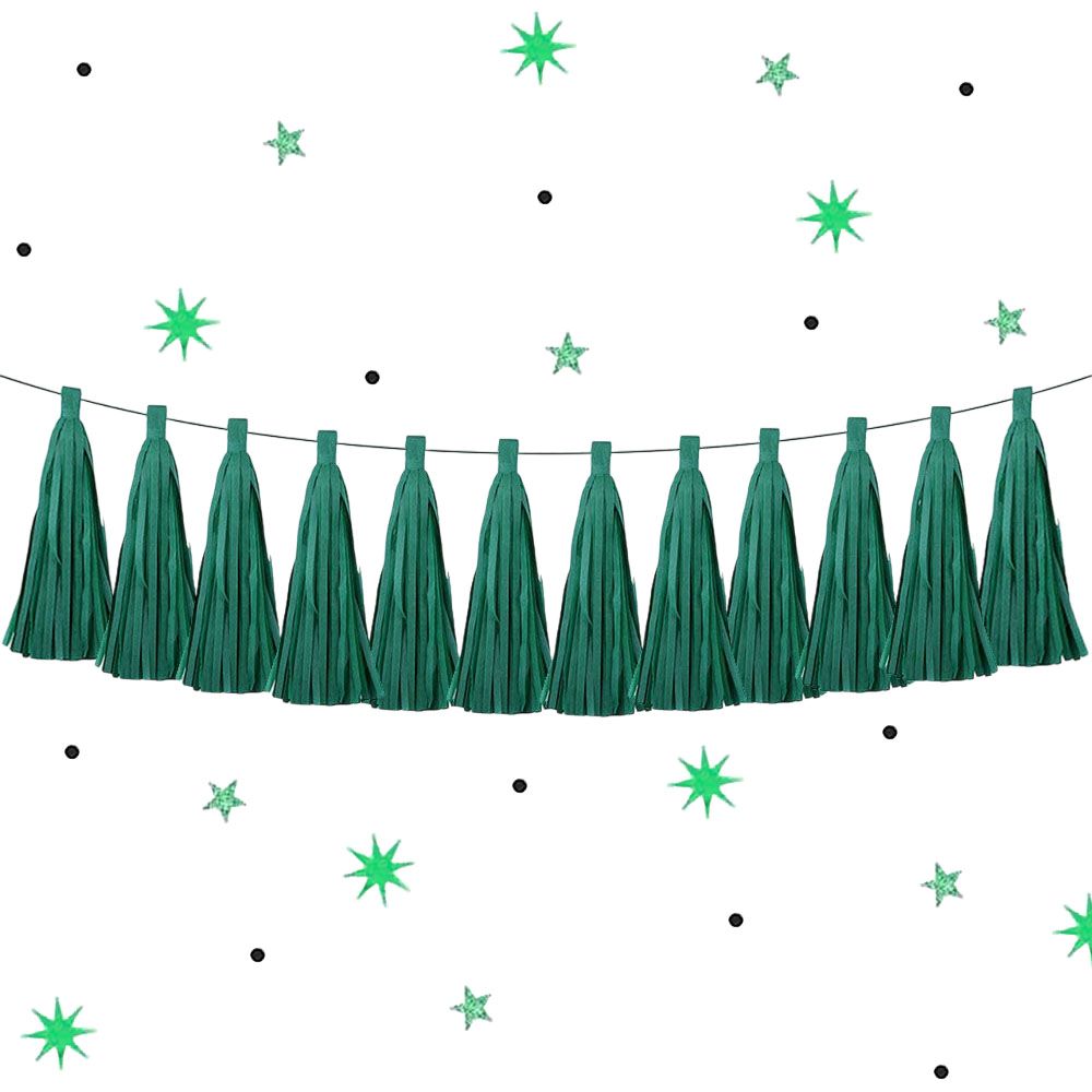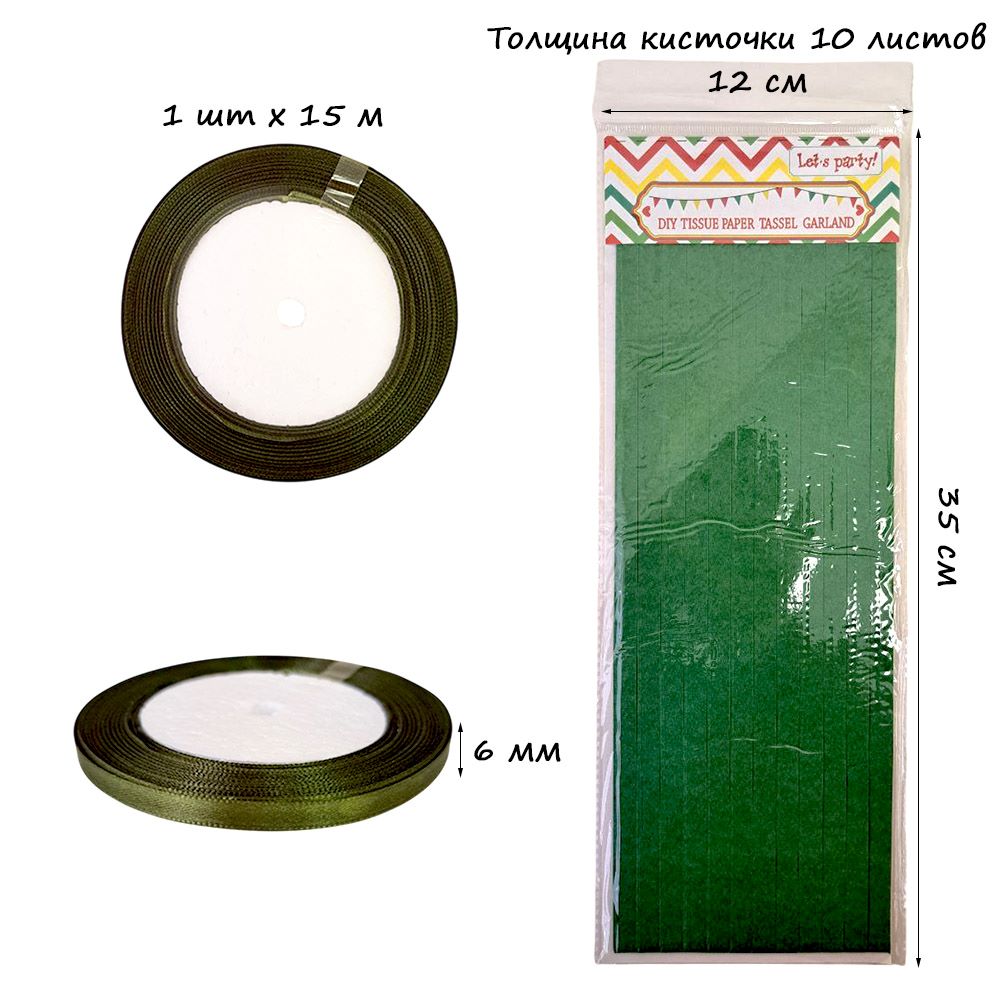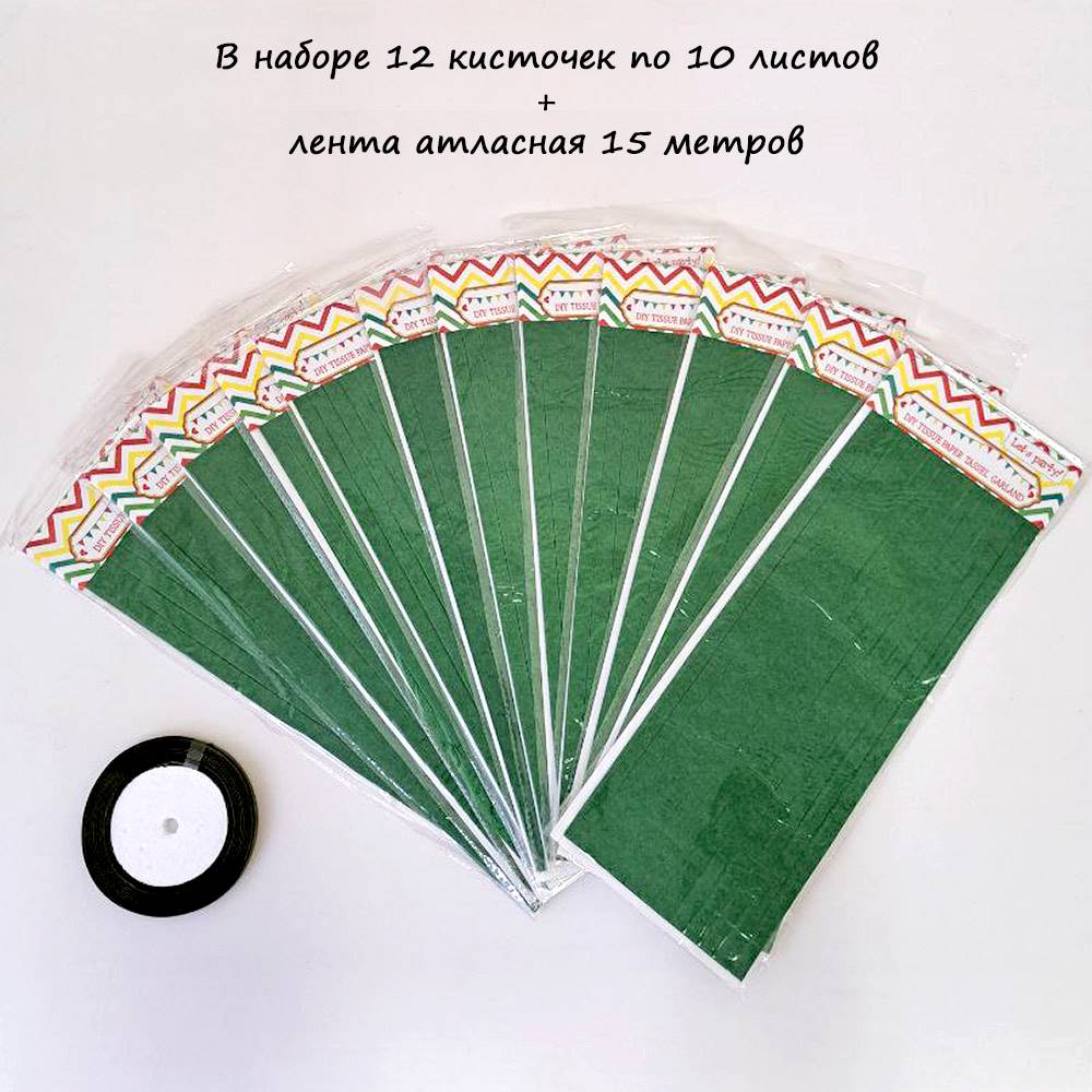Гирлянда тассел 12 кисточек по 10 листов, зеленый