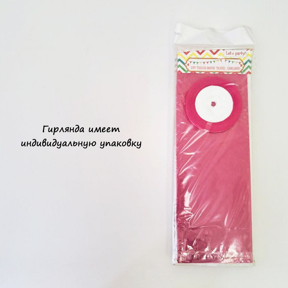 Гирлянда тассел 12 кисточек по 5 листов, малиновый