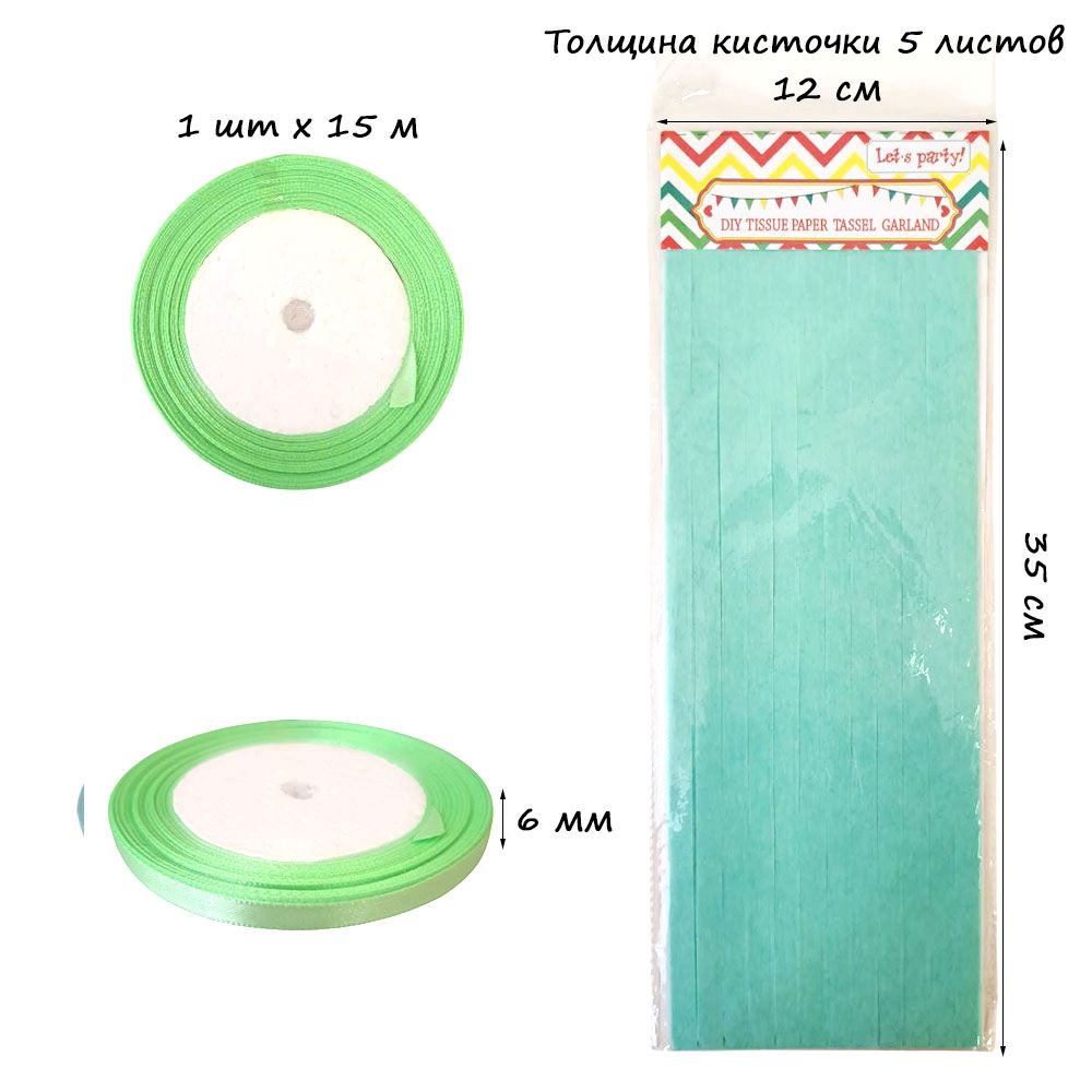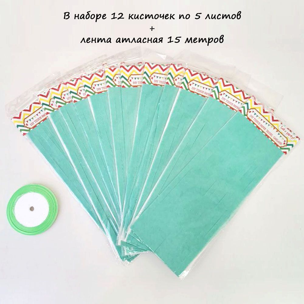 Гирлянда тассел 12 кисточек по 5 листов, мятный
