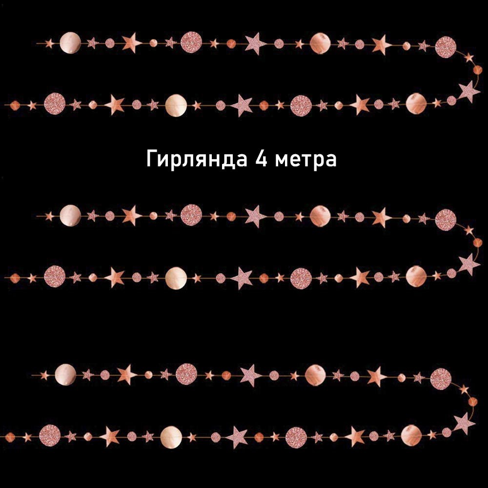 Гирлянда Звезды/Кружочки 4 м металлик/блеск Розовое Золото