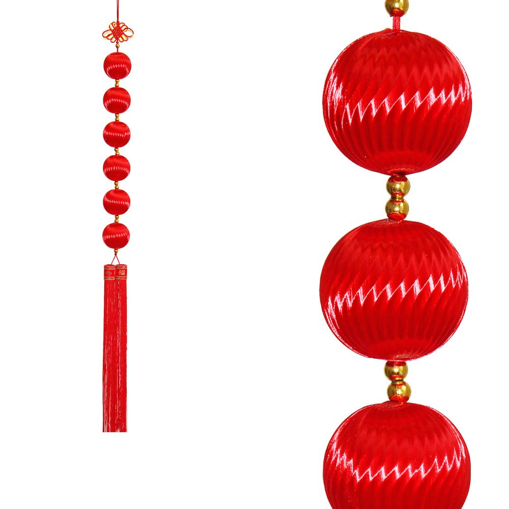 Коллекция подвесных шаров в традиционном китайском стиле. Легкие пластиковые шары плотно обвитые шелковыми нитями насыщенного красного цвета, создающими эффект мерцающего перелива при свете.