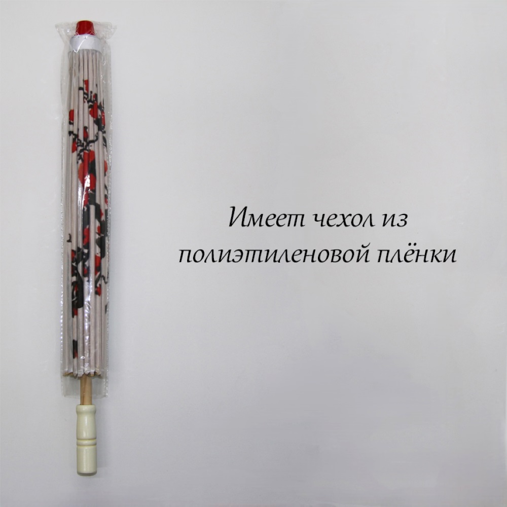 Каркас зонтика выполнен из дерева,купол зонта изготовлен из водоотталкивающего материала,который не пропускает воду.