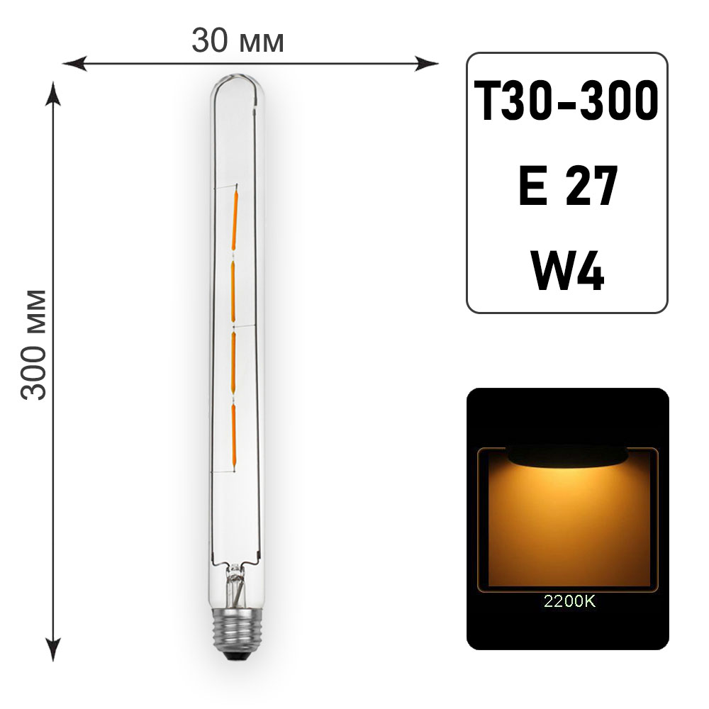 Лампа филаментная Т30 - 300 E27 W4 K2200