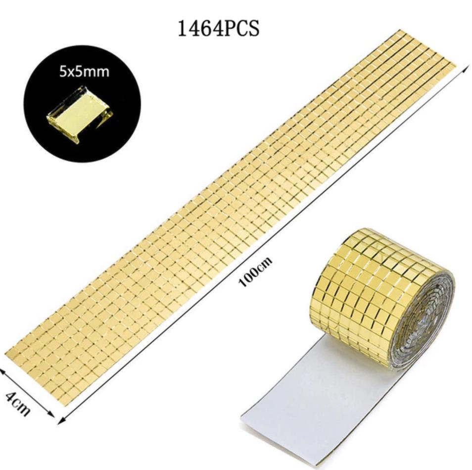 Лента самоклеящаяся зеркальная мозаика, из настоящих зеркал. Можно применять в качестве декорирования мебели, предметов интерьера, а так же подделок.
