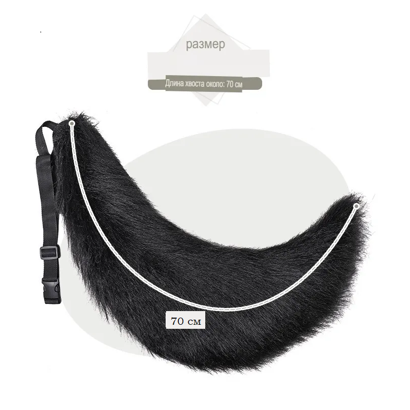 Лисий хвост для косплея 70 см, серо-зеленый+белый