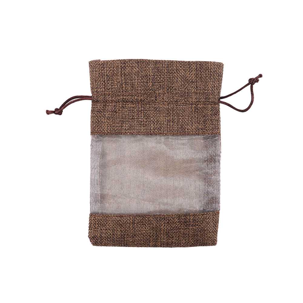 Мешочек из мешковины и органзы 13х18 см темно-коричневый