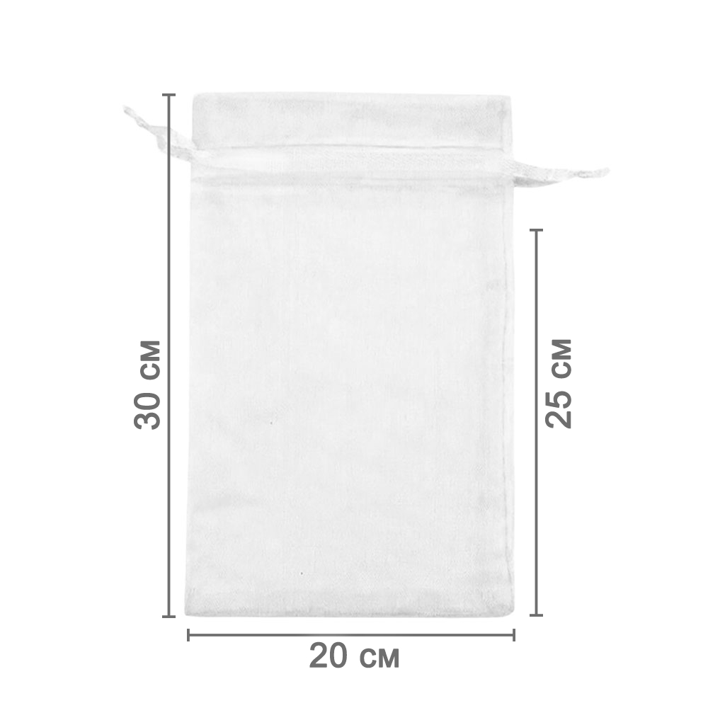 Мешочек из органзы 20 х 30 см — стильный аксессуар для упаковки средних и крупных предметов. Полупрозрачная ткань подчёркивает содержимое и придаёт аккуратный вид.