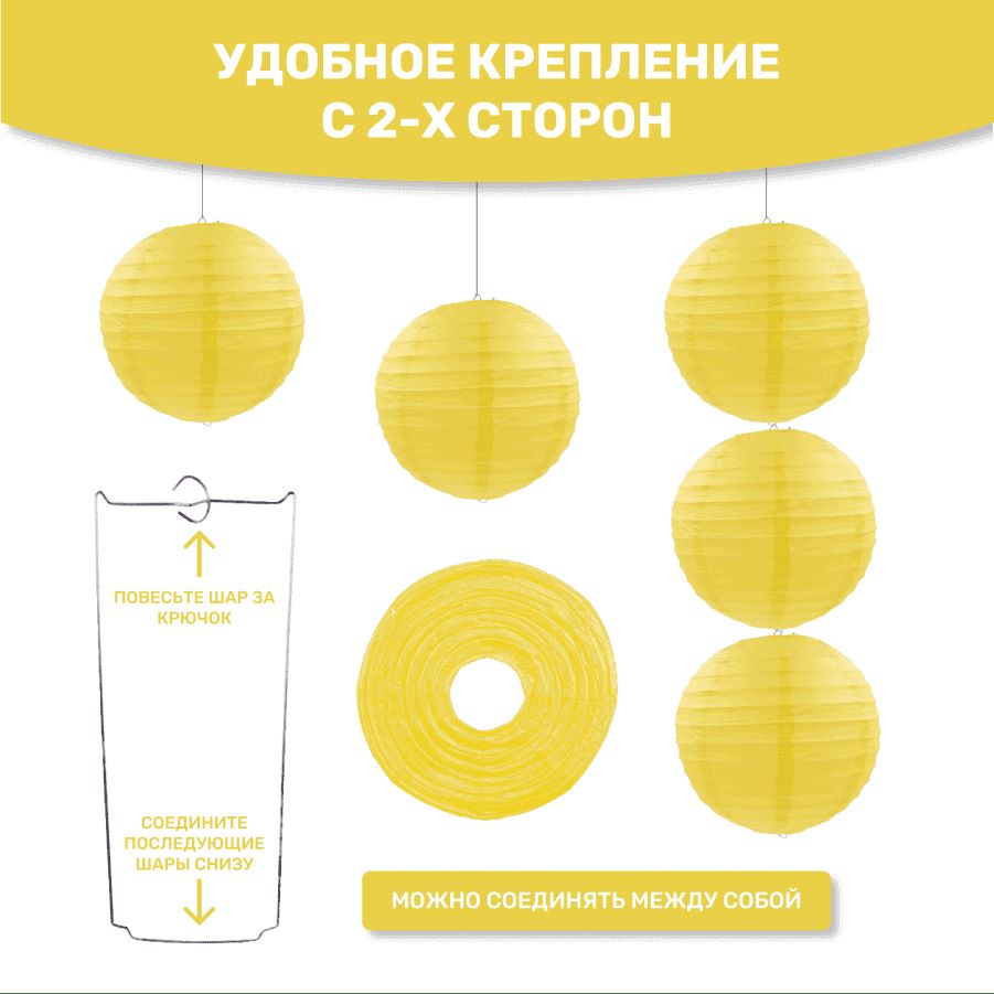 Комплект подвесные фонарики 30 см х 8 шт, желтый