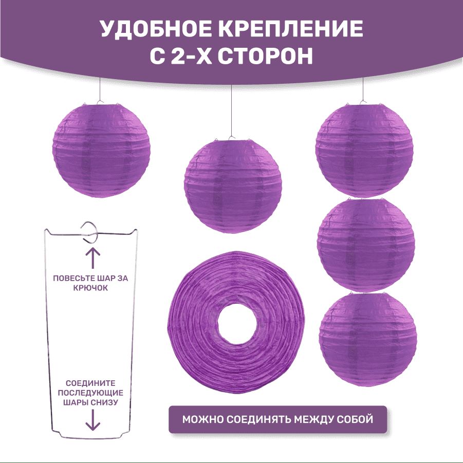Комплект подвесные фонарики 35 см х 8 шт, сиреневый