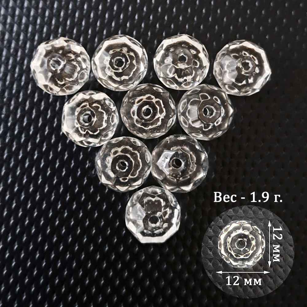 Набор прозрачных кристаллов "Граненый круг", 12 мм (10шт)