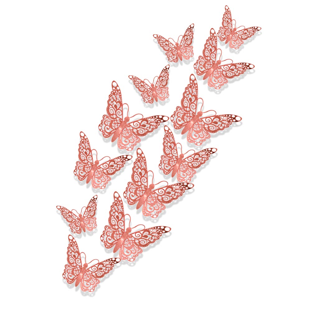 Наклейки Бабочки № 17 бумага металлик 12 шт розовое золото