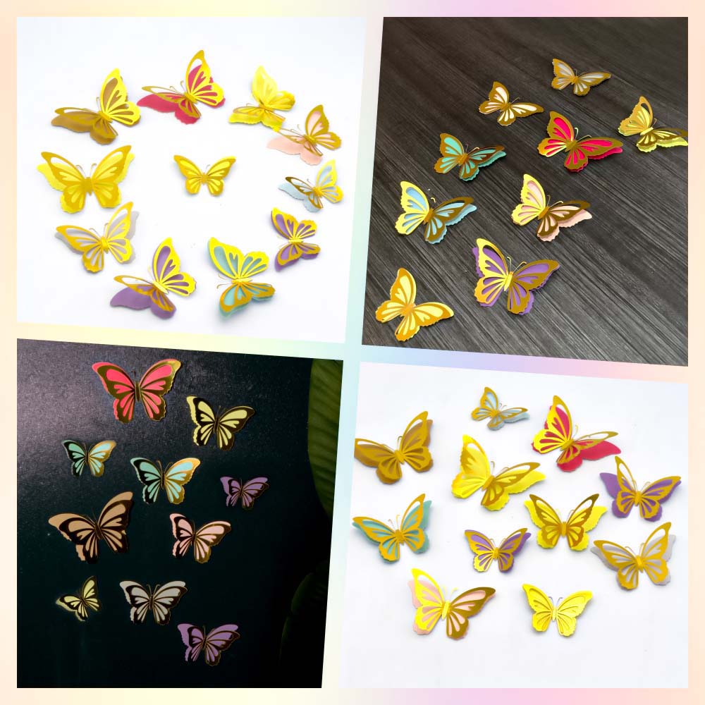 Наклейки Бабочки двойные перламутровые бумажные № 6 12 шт золото+мятный