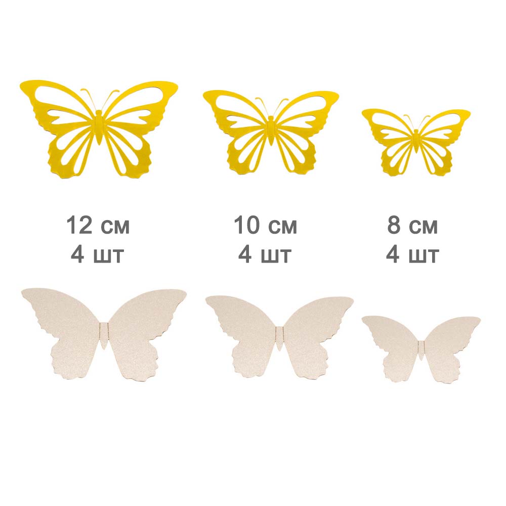 Наклейки Бабочки двойные перламутровые бумажные № 6 12 шт золото+серый