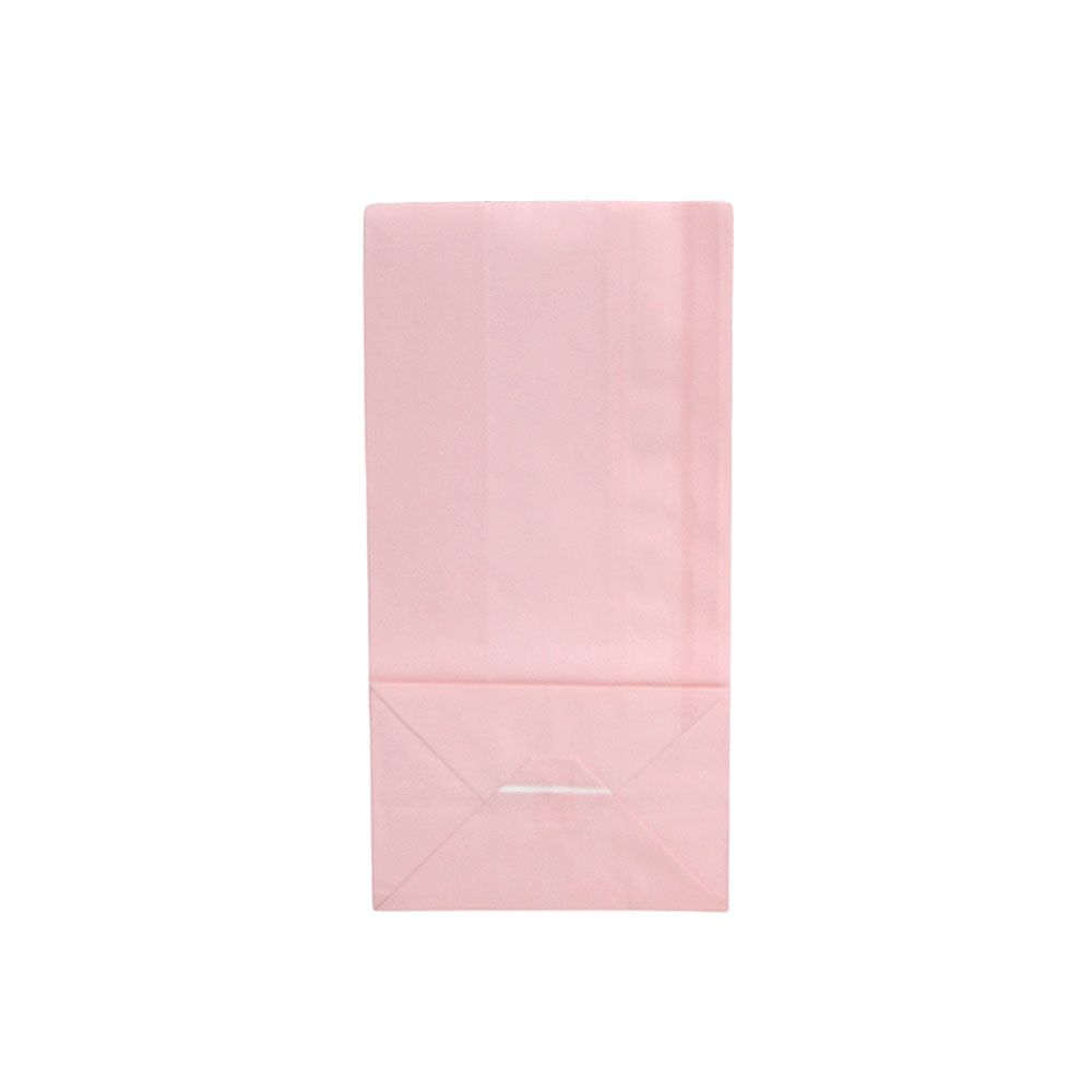 Подарочный пакет из крафтовой бумаги пастельного оттенка с белыми бумажными ручками и белой внутренней стороной.