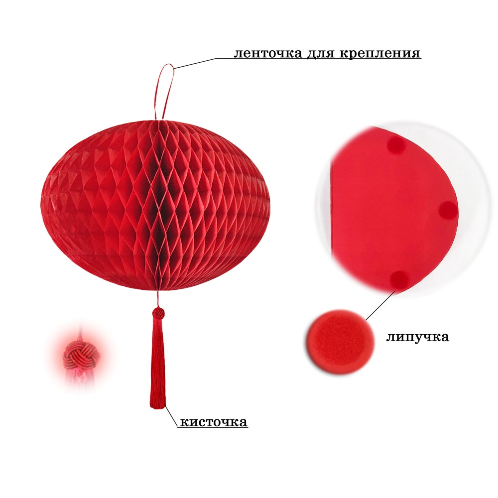 Объёмный подвесной фонарик-соты — стильный элемент праздничного декора. Благодаря крупному размеру и выразительной форме он становится ярким акцентом при оформлении зала, фотозоны или витрины.