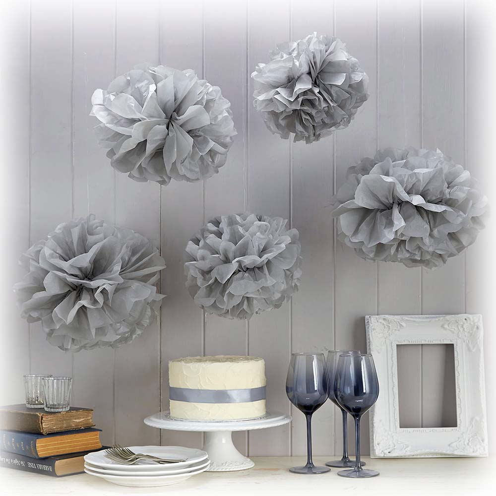 Серебряный бумажный помпон диаметром 35 см — стильное и лёгкое украшение для праздников, фотозон, витрин и интерьера. Отлично подойдёт для дней рождений, свадеб, вечеринок и тематических мероприятий.