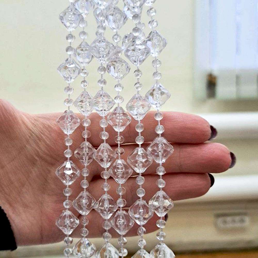Празддничное оформление - можно собрать из бусин шторы или украсить люстры.