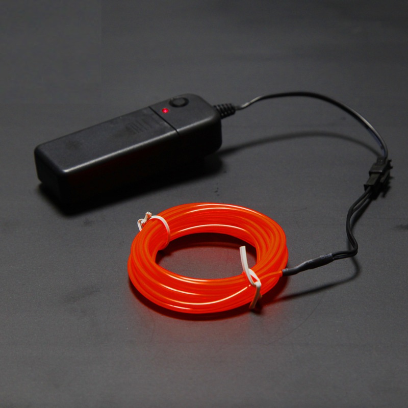 В комплекте с EL проводом, длинной 4 метра,  идет бокс с питанием от батареек, что позволяет его применять где угодно, даже на улице.  Работает от 2-х батареек 2АА (батареек в комплекте нет).