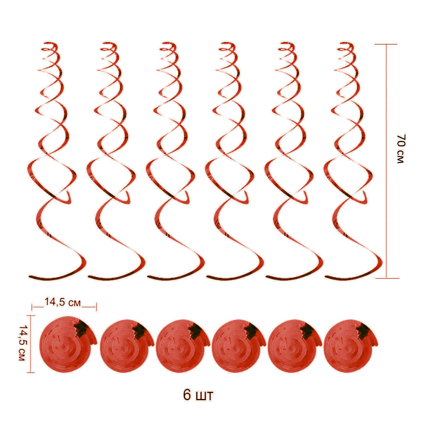 Спираль пластиковая 70см 6шт, красный