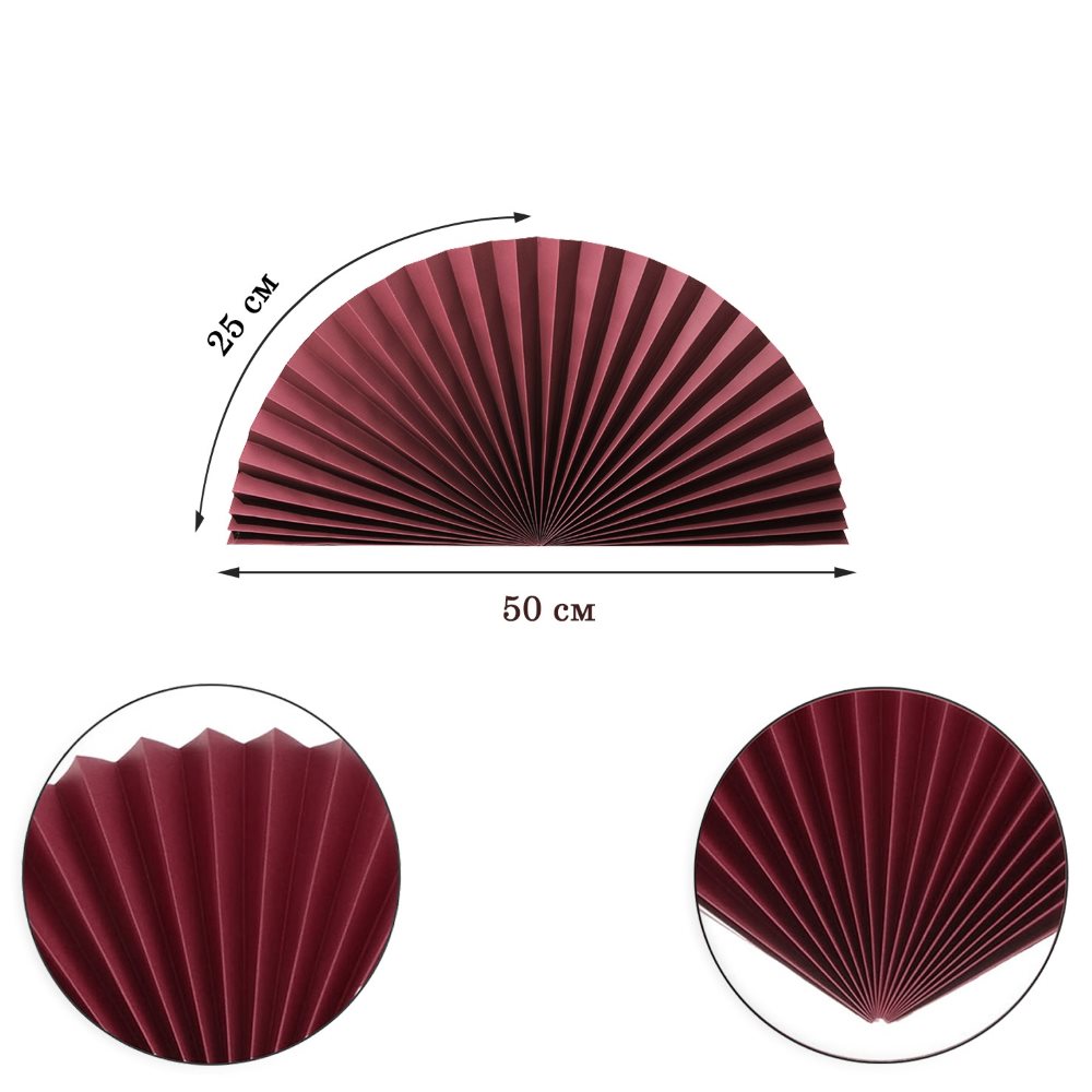 Веер-гармошка 160г/м 50 см, бордовый