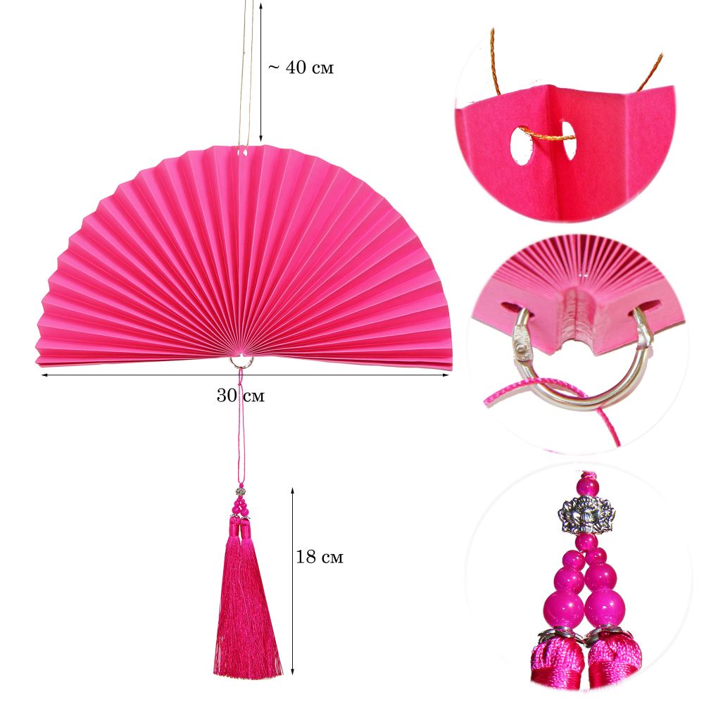 Веер-гармошка с кисточкой, 30 см, малиновый — 1 шт.