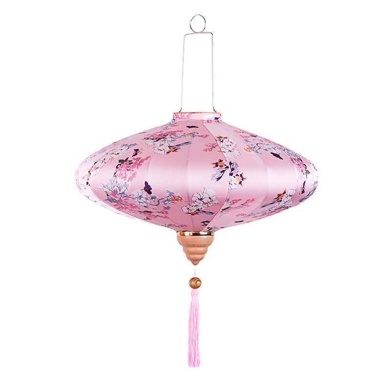 Это традиционные подвесные фонарики ручной работы, изготовленные из шелкового материала с элегантным цветочным узором, которые делают его изысканным и красивым.