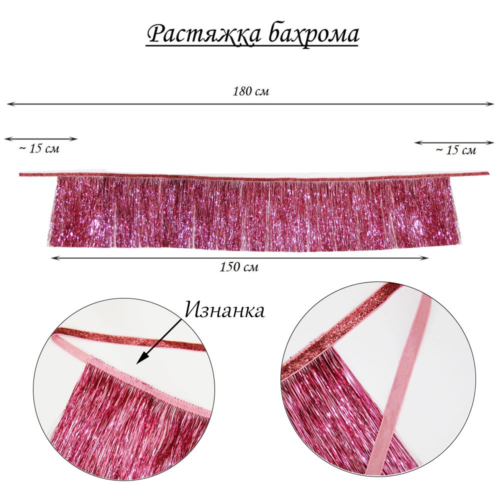 Растяжка бахрома, металлик розовый - 1 шт