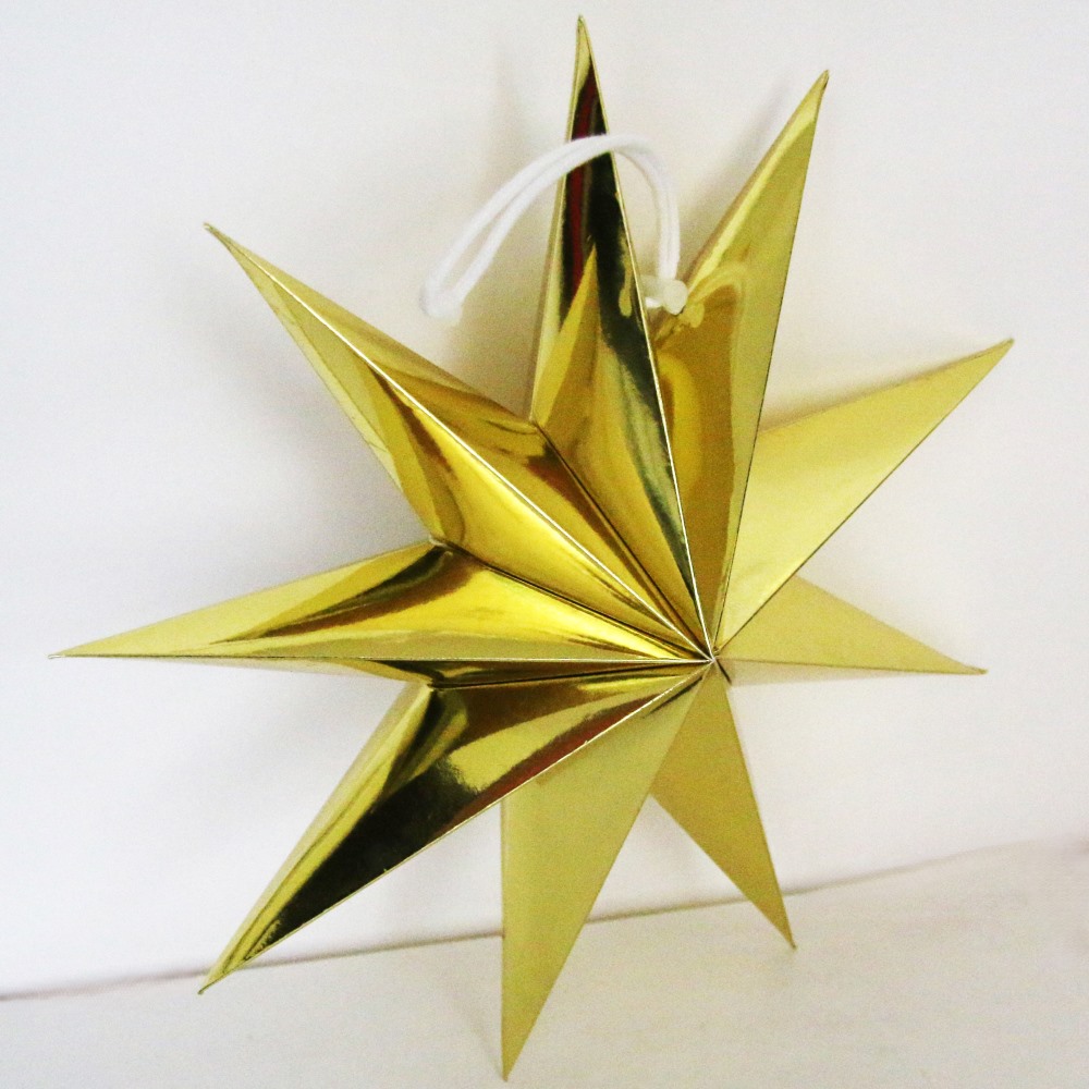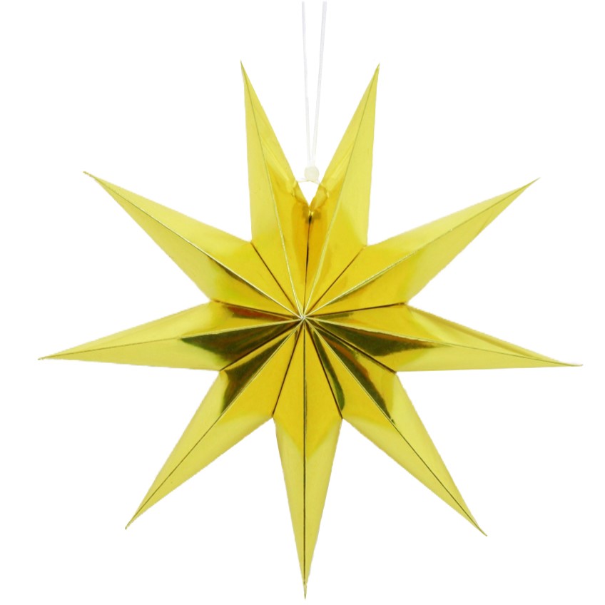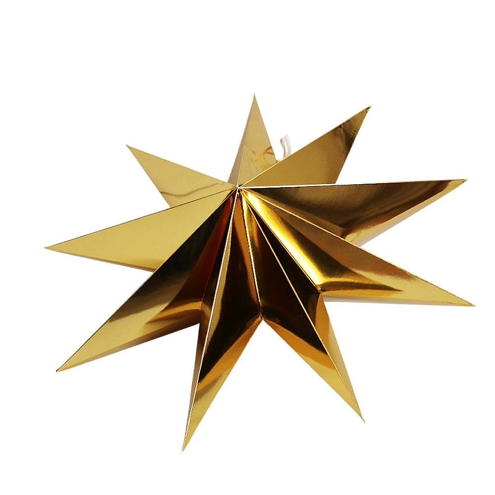 Объёмная девятиконечная звезда 45 см — декоративный элемент для интерьера и праздничного оформления. Лёгкая интерьерная звезда из картона хорошо держит форму и создаёт выразительный объём. Поставляется в сложенном виде, в комплекте шнур для фиксации объёма и подвеса.