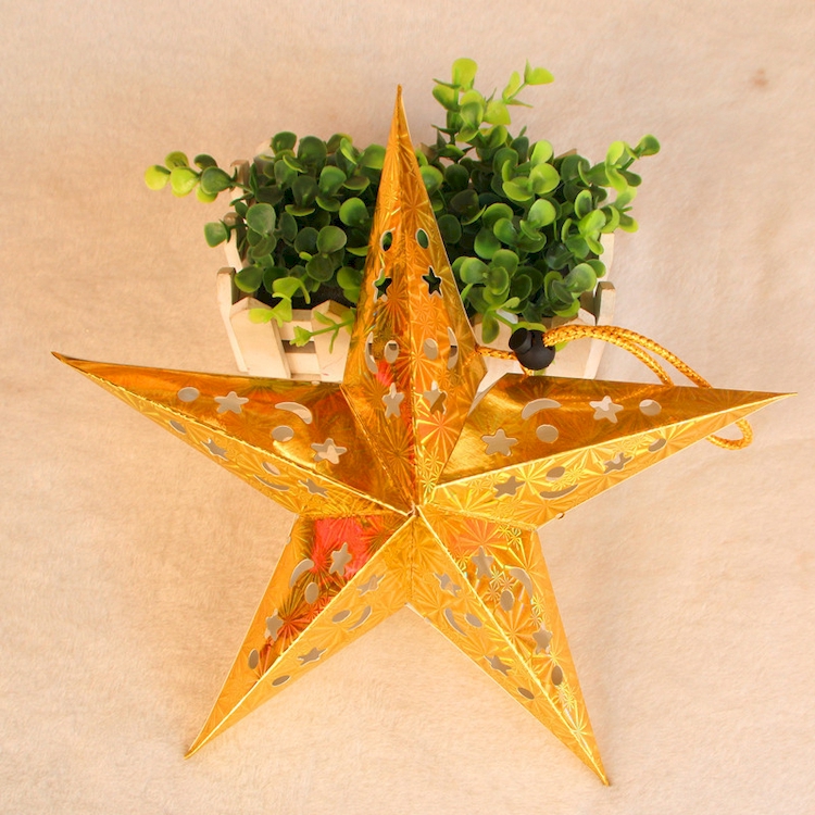 Звезда бумажная 30 см голографическая золотая