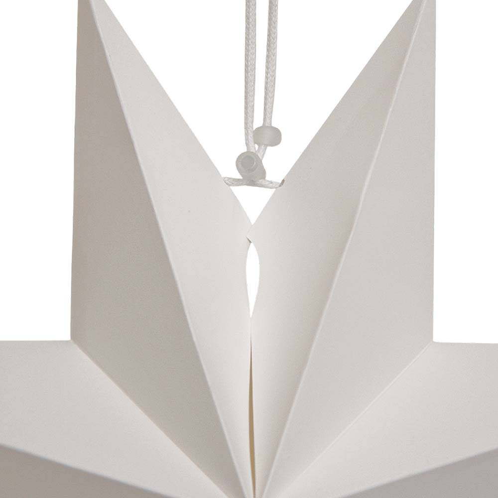 Аккуратно расправьте лучи, чтобы придать звезде идеальную объемную форму, затем зафиксируйте встроенным шнуром для подвеса.