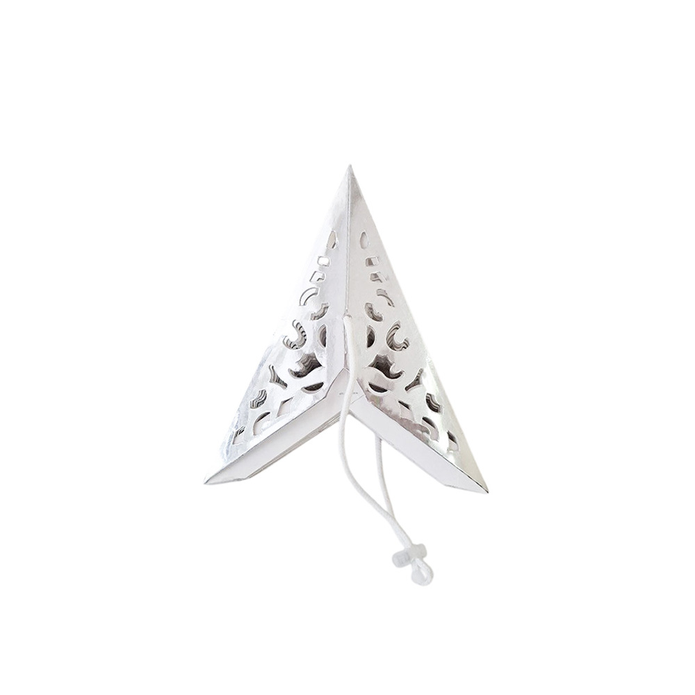 Аккуратно расправьте лучи, чтобы придать звезде идеальную объемную форму, затем зафиксируйте встроенным шнуром для подвеса.