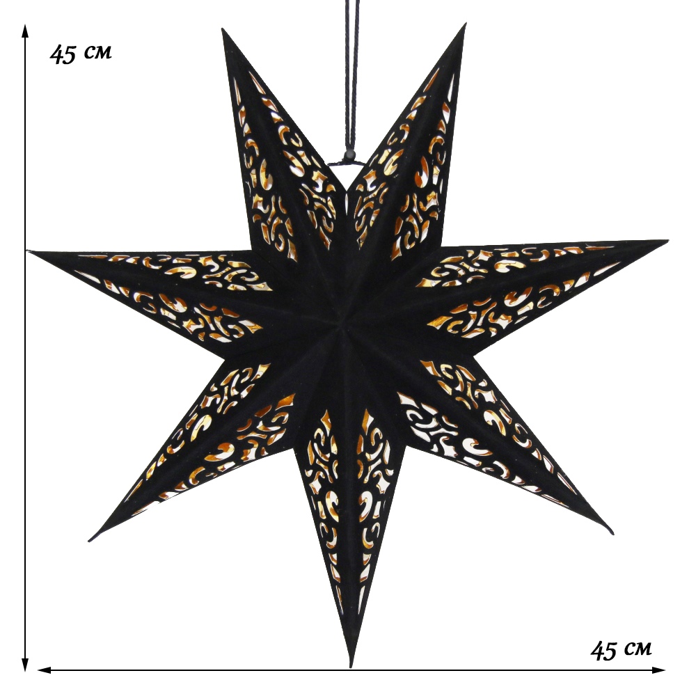Звезда семиконечная из бархатной бумаги 45 см, Вензель, черный+золото
